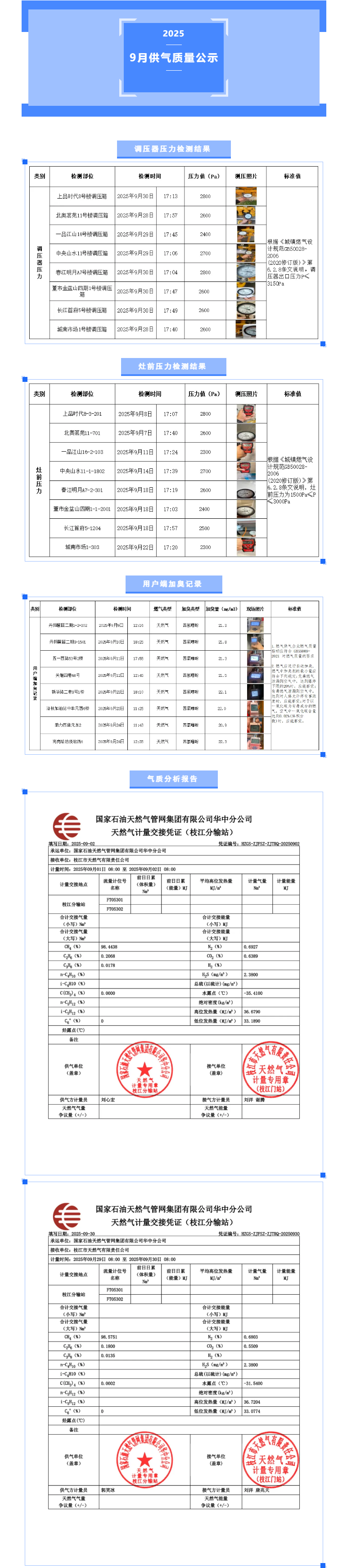 枝江市天然氣公司9月供氣質量公示